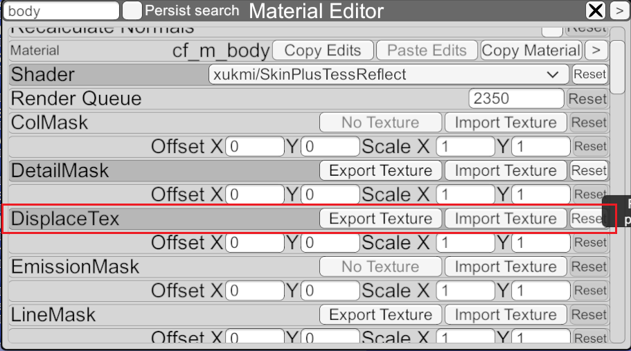The DisplaceTex in the MaterialEditor in the "Body" shader is responsible for this parameter.